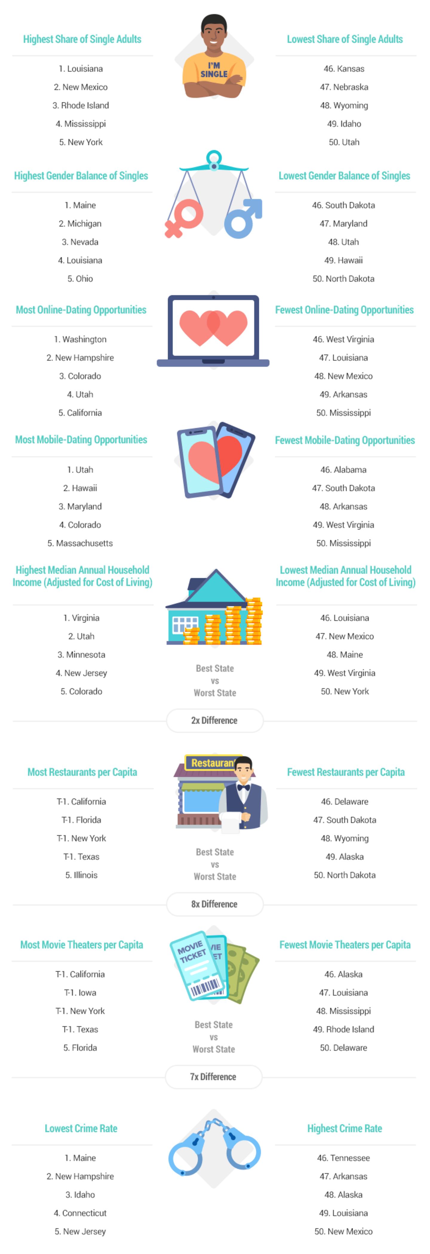 With Valentine’s Day fast approaching, many single people are looking for that special someone so they don’t spend another holiday alone. You can use the interactive map to find the states that are the best and worst for singles.