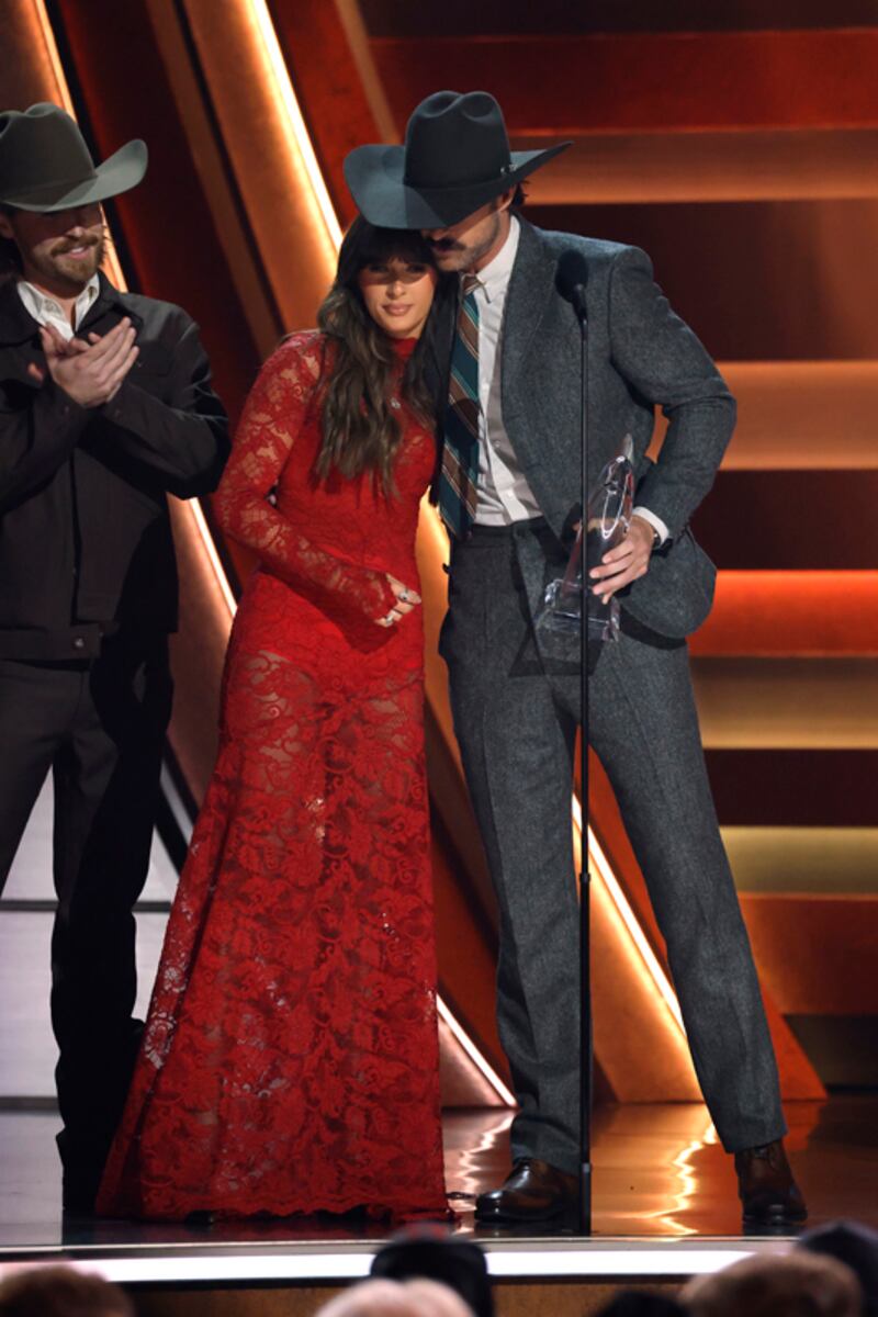 The 59th Annual CMA Awards - Show NASHVILLE, TENNESSEE - NOVEMBER 19: EDITORIAL USE ONLY (L-R) Ella Langley and Riley Green accept the Song of the Year Award for “you look like you love me” onstage during the 59th Annual CMA Awards at Bridgestone Arena on November 19, 2025 in Nashville, Tennessee. (Photo by Jason Kempin/Getty Images) (Jason Kempin/Getty Images)