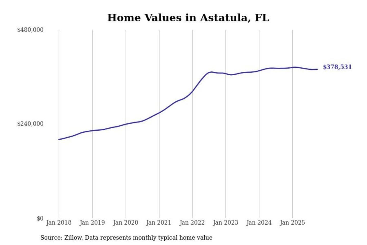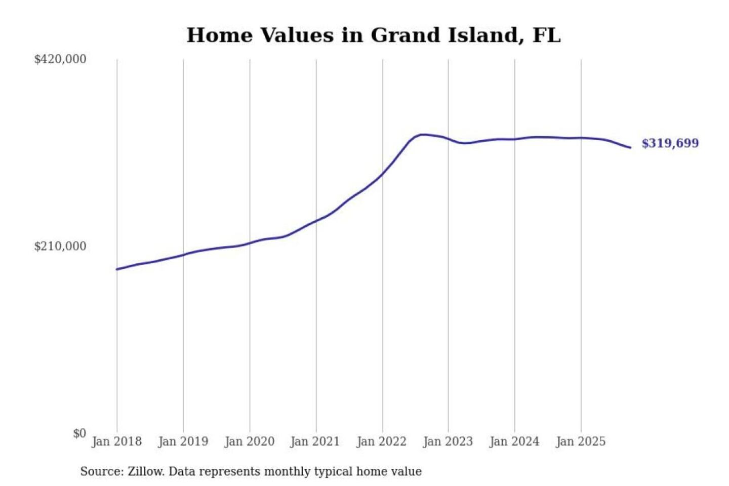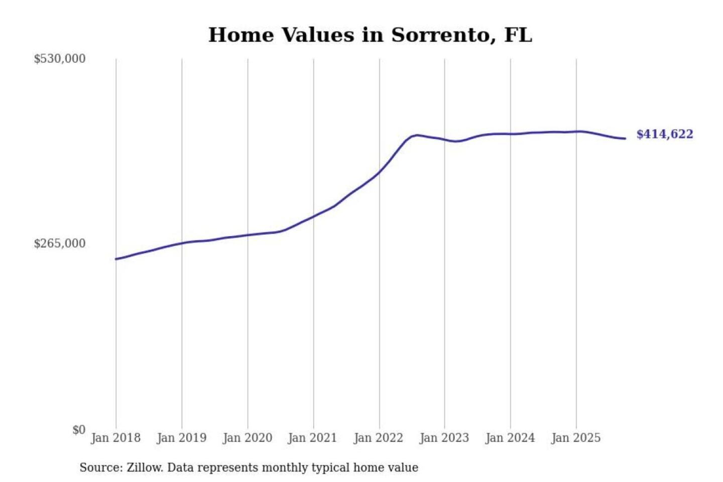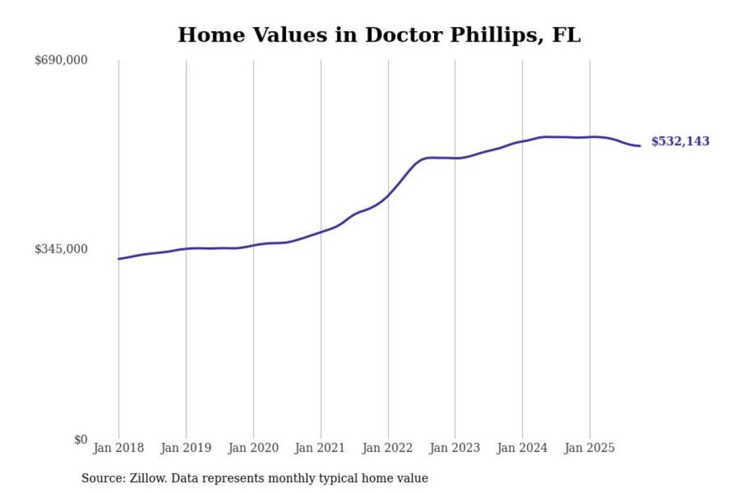 Stacker compiled a list of cities with the most expensive homes in the Orlando-Kissimmee-Sanford, FL metro area using data from Zillow. Charts show the monthly typical home value since January 2018.