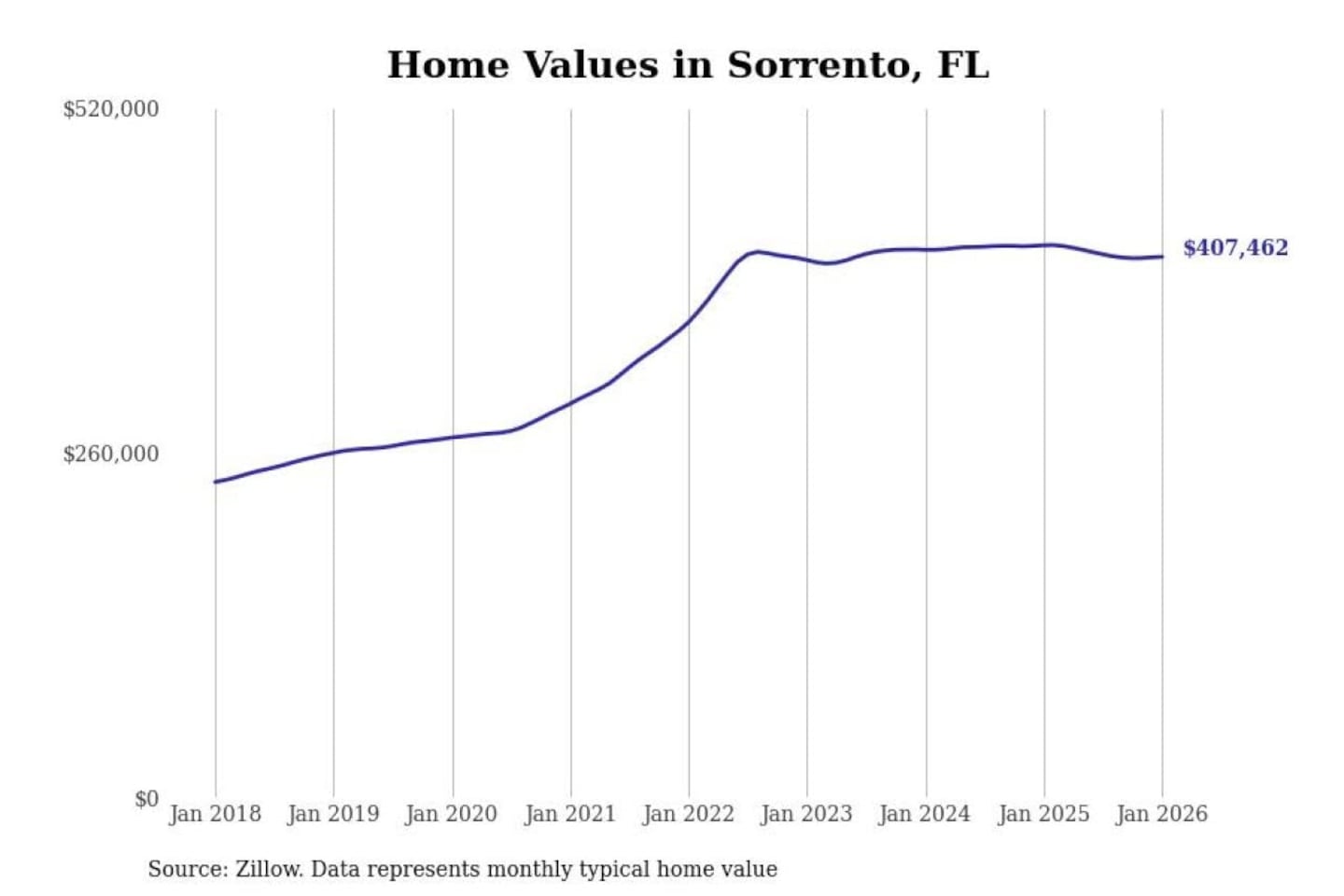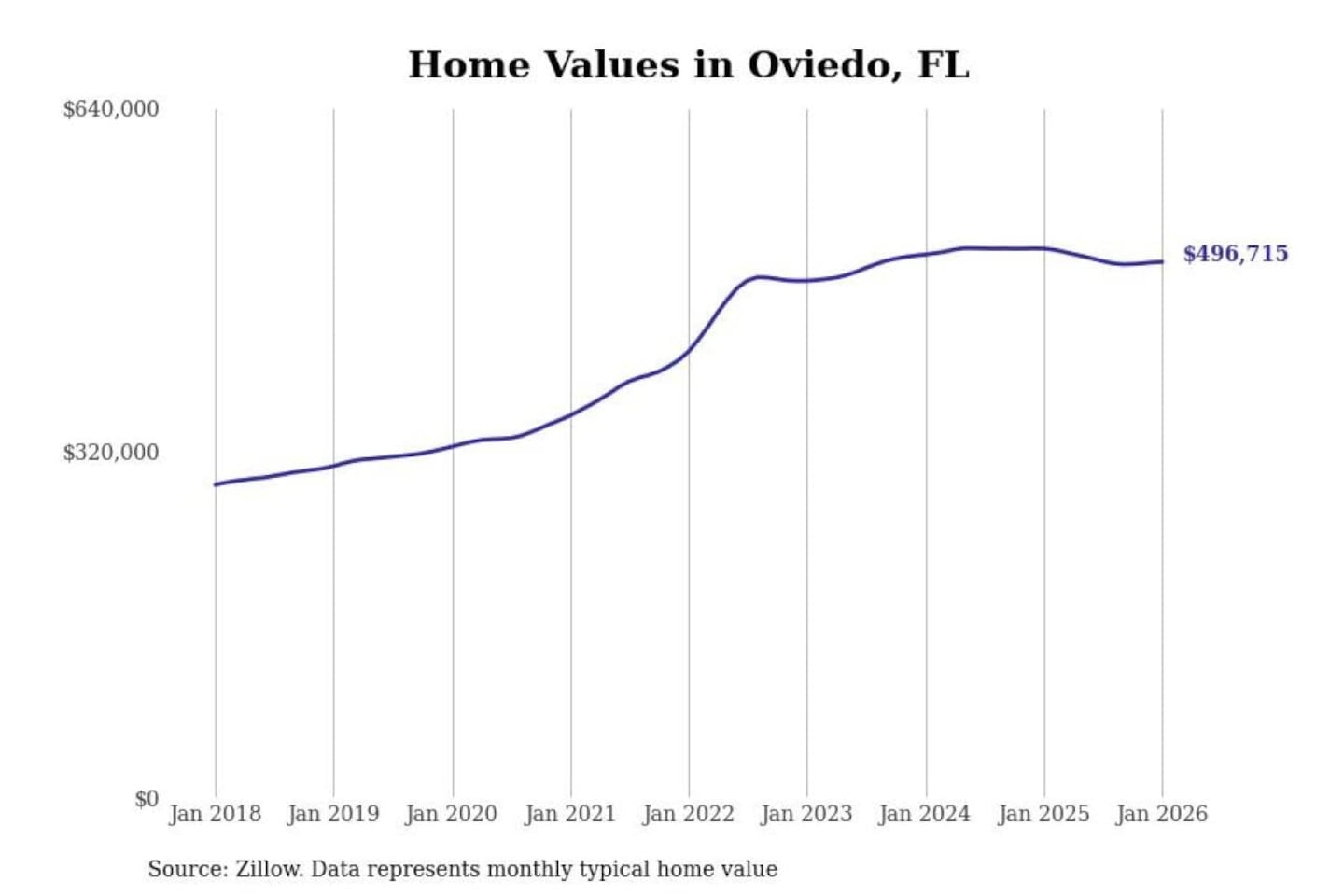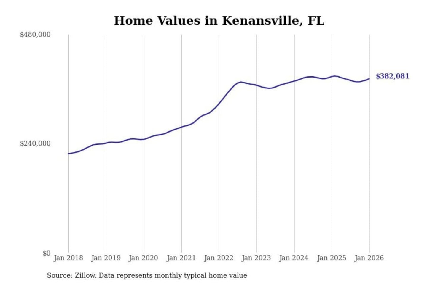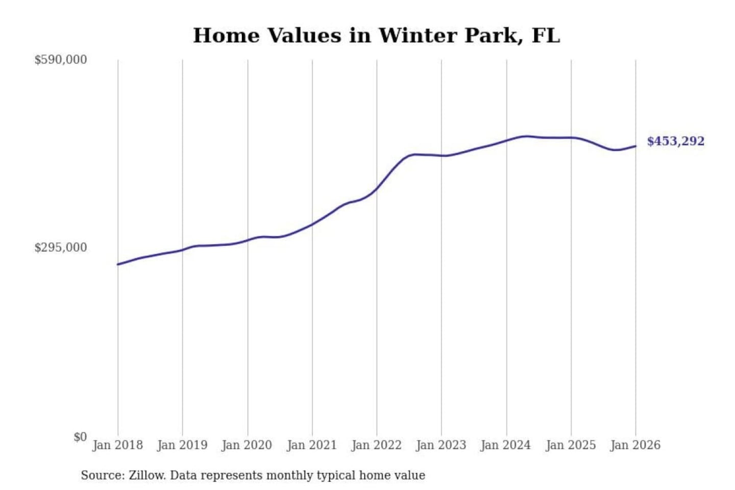 Stacker compiled a list of cities with the most expensive homes in the Orlando-Kissimmee-Sanford, FL metro area using data from Zillow. Charts show the monthly typical home value since January 2018.