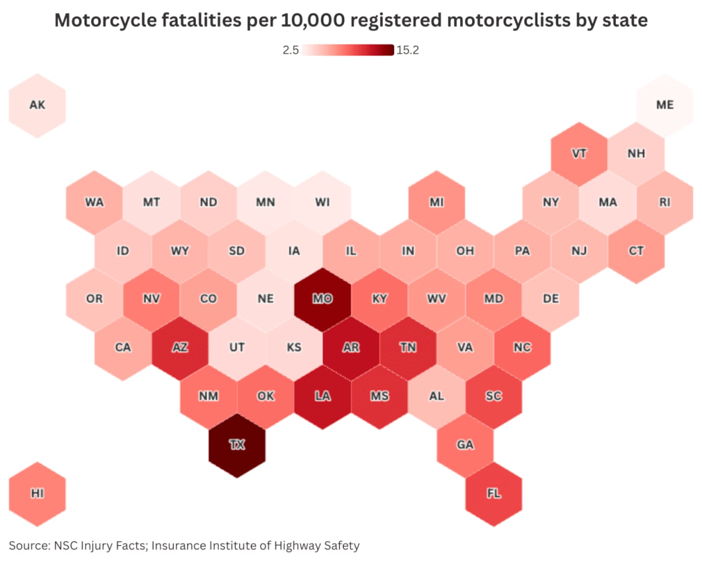 The rate of motorcycle fatalities varies widely from state to state. There can be many reasons for these discrepancies; however, helmet use is one of the biggest contributing factors, according to the National Safety Council.