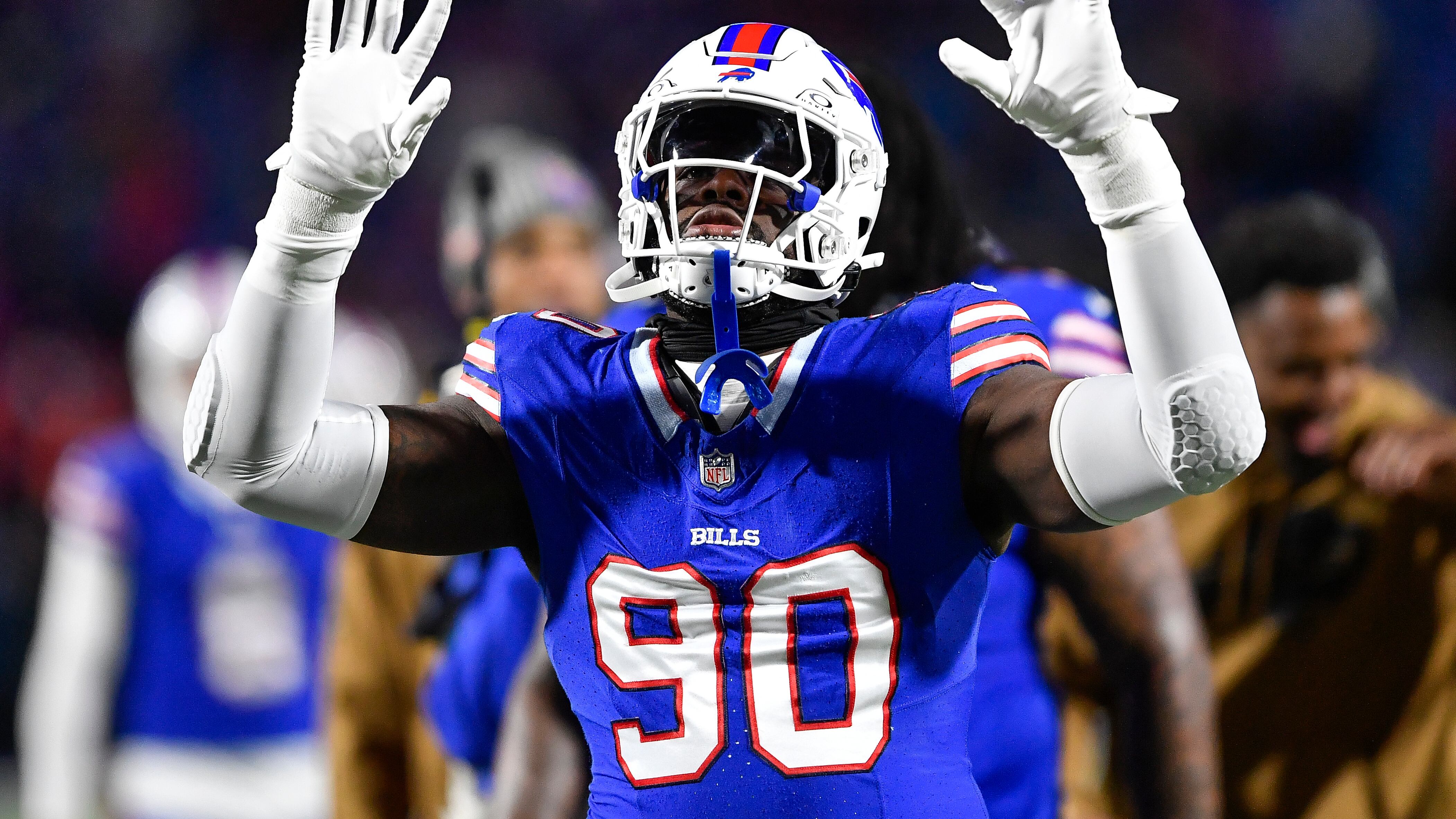 Buffalo Bills defensive end Shaq Lawson (90) warms up before an NFL football game against the Denver Broncos in Orchard Park, N.Y., Monday, Nov. 13, 2023. (AP Photo/Adrian Kraus) (Adrian Kraus/AP)