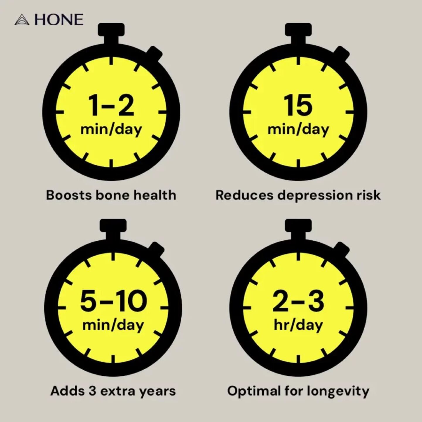 Case in point: A study published in the International Journal of Epidemiology found that just one to two minutes per day of running in pre-menopausal women and slow jogging in postmenopausal women is associated with better bone health.
