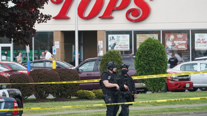 Gunman opens fire in Buffalo supermarket Police secure the area around a supermarket where several people were killed in a shooting, Saturday, May 14, 2022 in Buffalo, N.Y. Officials said the gunman entered the supermarket with a rifle and opened fire. Investigators believe the man may have been livestreaming the shooting and were looking into whether he had posted a manifesto online. (Mark Mulville/AP)