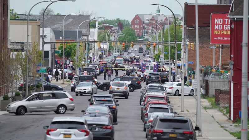 Gunman opens fire in Buffalo supermarket Police vehicles block off the street where at least 10 people were killed in a shooting at a supermarket, Saturday, May 14, 2022 in Buffalo, N.Y. Officials said the gunman entered the supermarket with a rifle and opened fire. Investigators believe the man may have been livestreaming the shooting and were looking into whether he had posted a manifesto online (Derek Gee/The Buffalo News via AP) (Derek Gee/AP)
