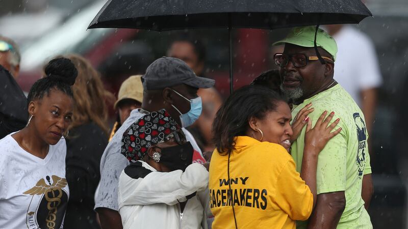 Gunman opens fire in Buffalo supermarket People hug outside the scene after a shooting at a supermarket on Saturday, May 14, 2022, in Buffalo, N.Y. (Joshua Bessex/AP)