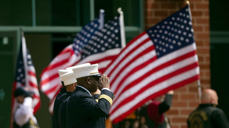 Photos: Aaron Salter Jr., retired Buffalo officer killed in mass shooting, honored at funeral A member of the New York State Patrol honor guard walks to a funeral service for Aaron Salter Jr. at The Chapel at Crosspoint on Wednesday, May 25, 2022, in Getzville, N.Y. Salter Jr. was killed in the Buffalo supermarket shooting on May 14. (AP Photo/Joshua Bessex)