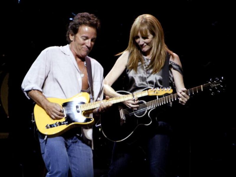 Through the years Patti Scialfa is joined on stage by her husband Bruce Springsteen during the Vote For Change concert at the Continental Airlines Arena October 13, 2004 in East Rutherford, New Jersey. (Photo by Paul Hawthorne/Getty Images) (Paul Hawthorne/Getty Images)