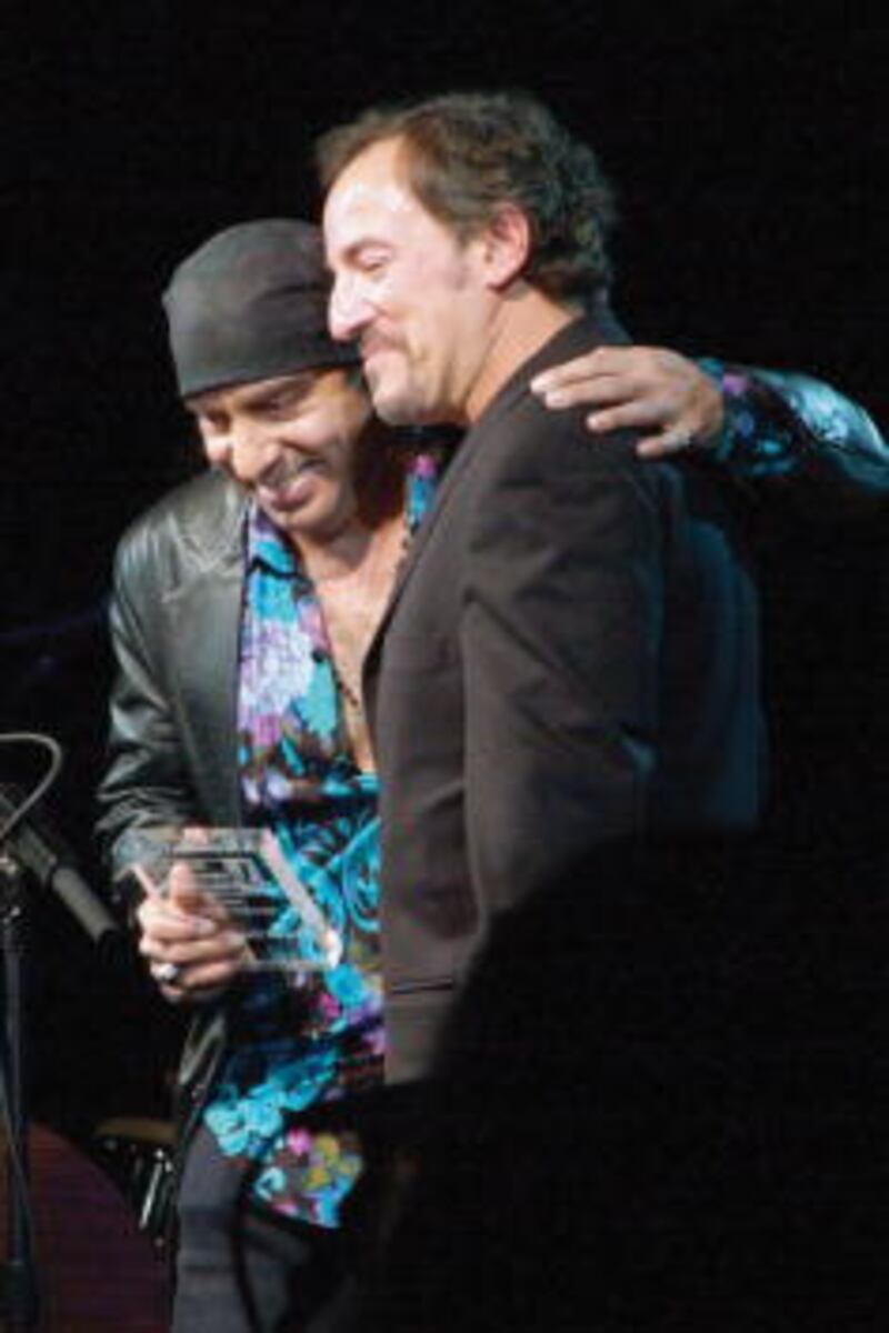 Through the years Singer Bruce Springsteen presents an award to musician Steve Van Zandt at the Creative Coalition 2001 Spotlight Awards November 12, 2001 at Sotheby's in New York City. The benefit honored Harry Belafonte, Steven Van Zandt and Russell Simmons for their humanitarian work. (Photo by Lawrence Lucier/Getty Images) (Lawrence Lucier/Getty Images)