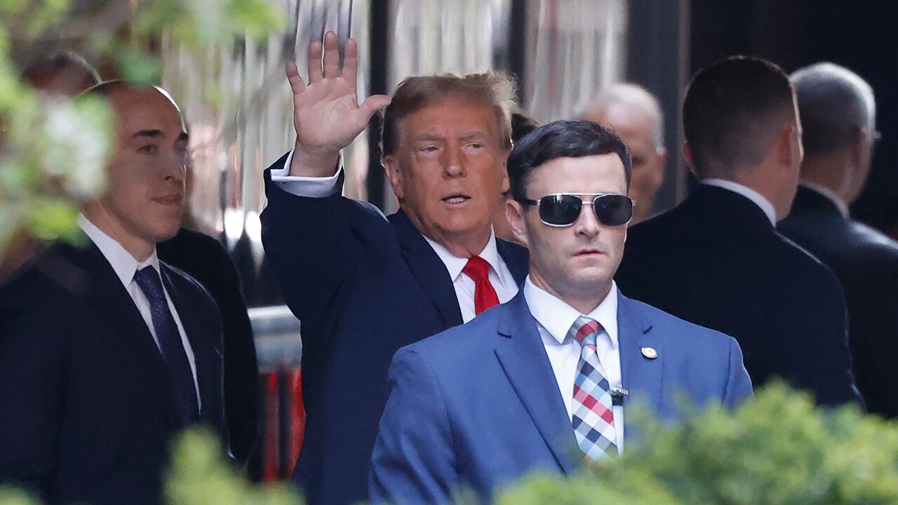 Donald Trump Former President Donald Trump departs Trump Tower en-route to Manhattan Criminal Court on April 15, 2024 in New York City. Jury selections are set to begin in the former president's criminal trial. Trump faces 34 felony counts of falsifying business records in the first of his criminal cases to go to trial. This is the first-ever criminal trial against a former president of the United States. (Michael M. Santiago/Getty Images)