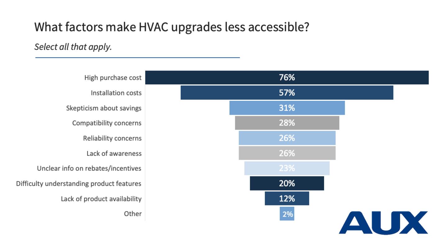 What most respondents said made sustainable HVAC options inaccessible wasn't a lack of knowledge of the technology or doubts about its ability to deliver on promised energy savings. It was the cost to purchase the equipment and the installation.